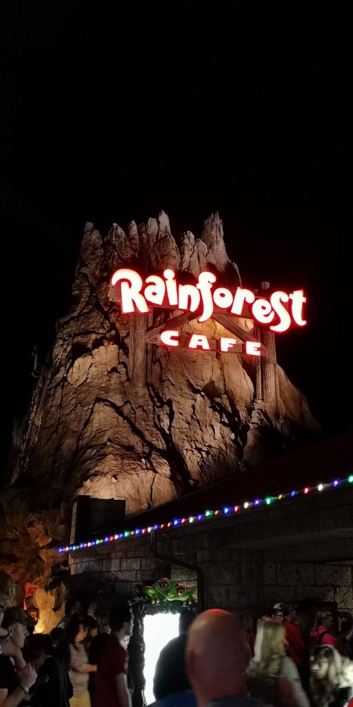 We made it over the Rainforest Cafe which from the other side of Disney Springs looked like a huge volcano across a lake.