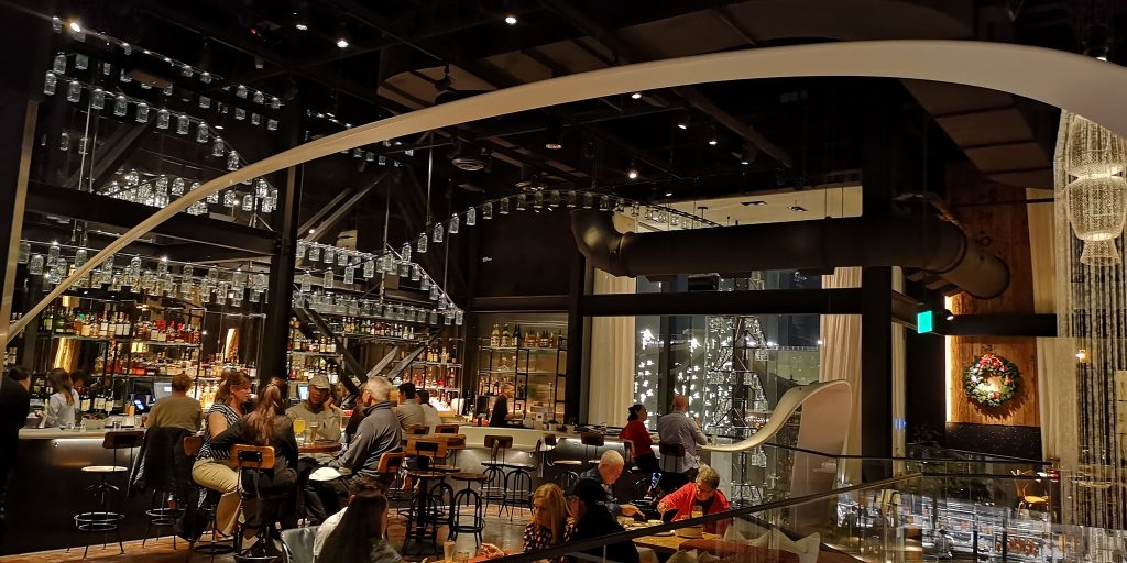 We have to say, the inside of the restaurant looked absolutely beautiful. There are two levels with the upstairs having a bar style seating and a lounge area. All along the outside edges of the second level were private booths. Looks like a reservation would be in order to secure one of those!