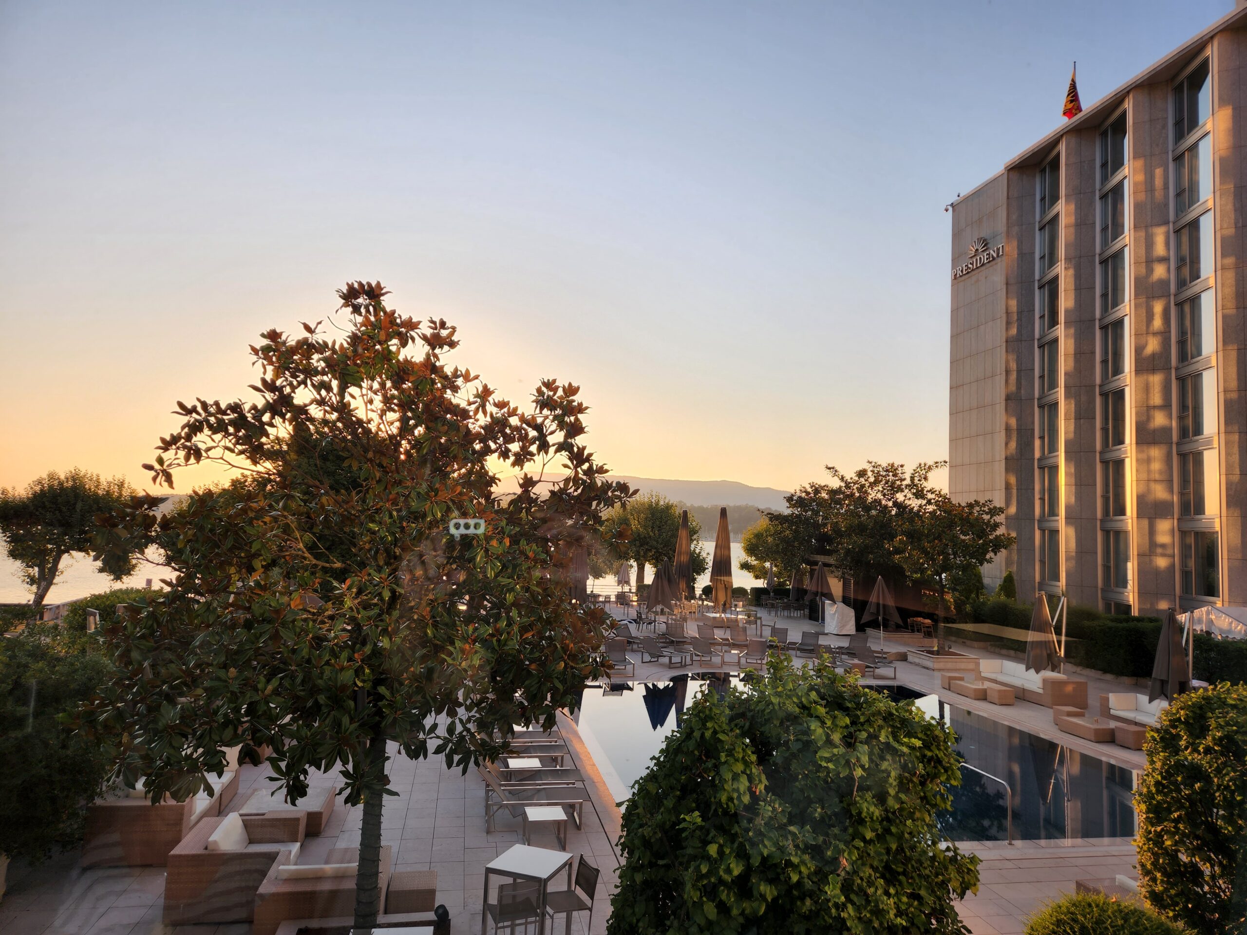 We got our first room on floor 5 and we were a bit underwhelmed as it faced directly into another apartment building which wasn’t the nicest view, in fact, there was no view other than the people across. So we went down and asked the front desk if there was another room and they gave us a nicer room facing the pool and Lake Geneva. It was on the 2nd floor which is lower but that didn’t bother us. It was a fairly nice room, we weren’t overwhelmed by it as it didn’t have the “wow” factor like St. Regis Venice where we stayed just 4 nights prior.