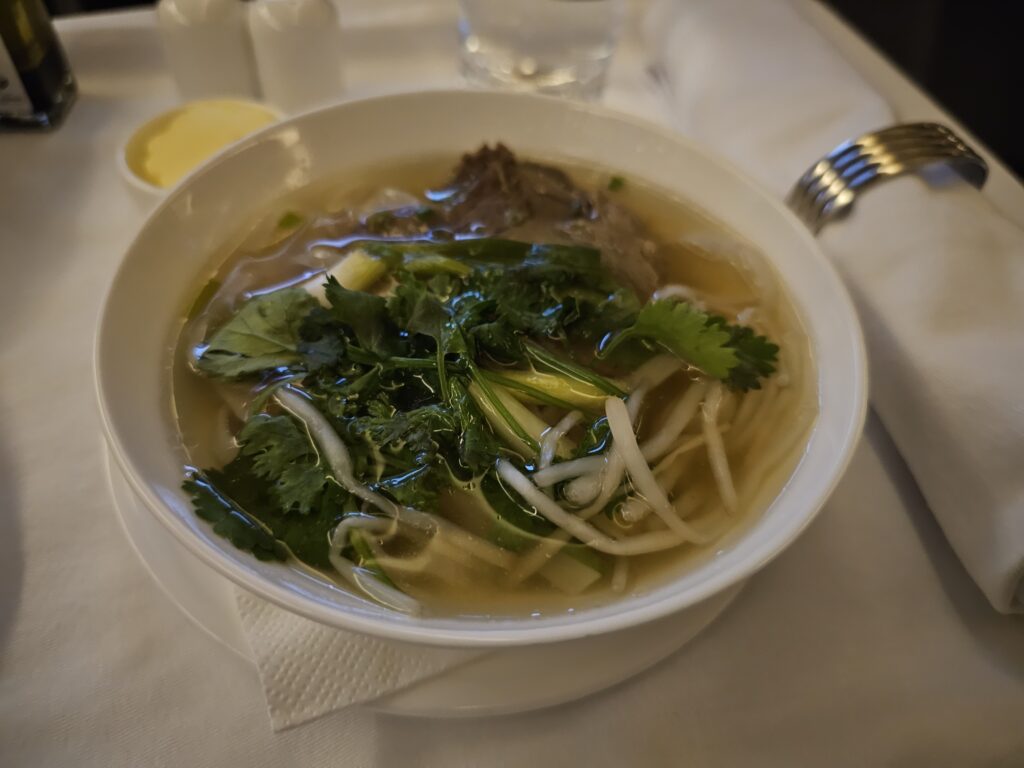 The 777-300ER is showing its age from the older style seats where privacy wasn’t a priority. However, it is what it is and we enjoyed the soft product more than the hard product on this flight.