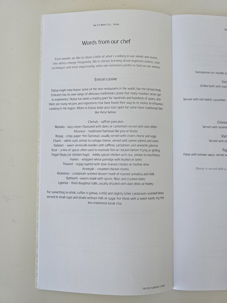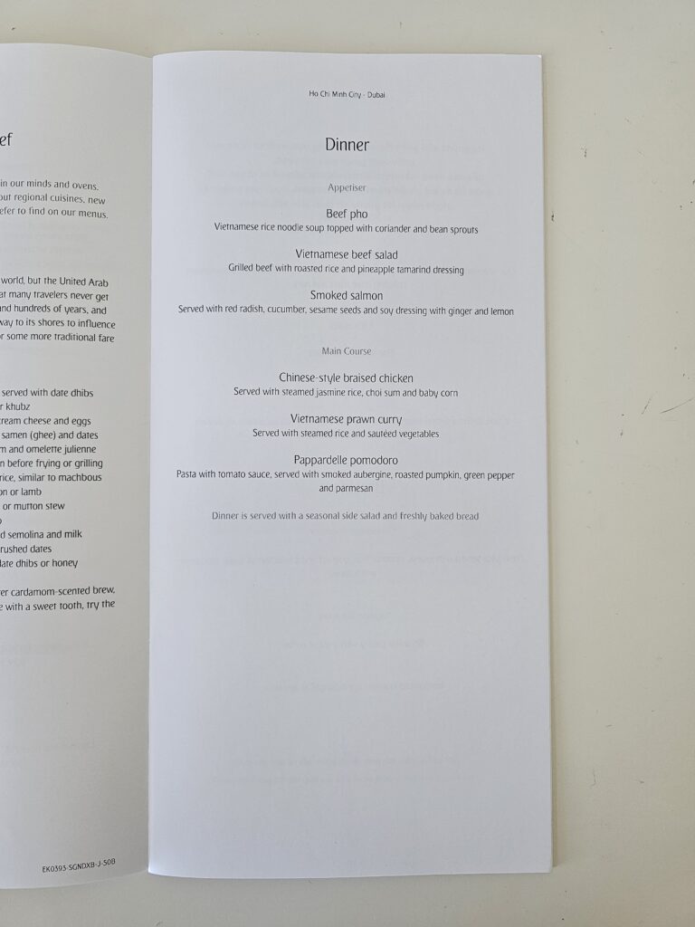 Just in case you needed some extra reading material, here is the full menu from Emirates for this flight as well as words from their chef.